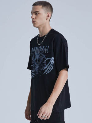 High Street Skull Print Short Sleeve Oversized Fit T-shirt | Dark Street Style | Streetwear T-Shirts Manufacturer | 50 PCS MOQ