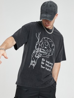 Custom Skeleton T Shirts Acid Washing Screen Printing Oversize Men Dark Tshirts