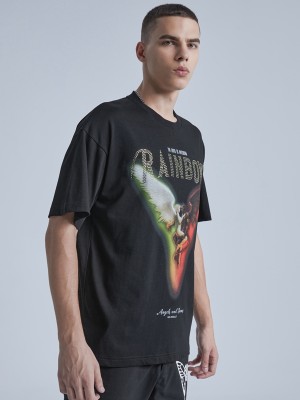 Custom Demons & Angels Print Streetwear T-shirt | White Ink Jet Print Graphic Dark Style T-shirt