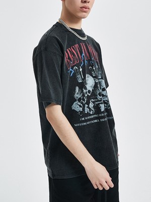 Custom Logo Wholesale Mens Black Acid Washed Tshirts Oversize 100% Cotton Skeleton T-shirt
