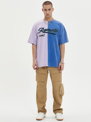 Patchwork Washed Short Sleeve Towel Embroidered Printed T-Shirt - Desgin Personalized Printed Streetwear