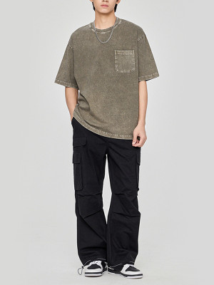 Custom Acid Wash 100% Blank Cotton Dark Men Vintage T-shirts | Retro Pocket Short Sleeve T-Shirts