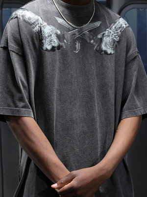 Wholesale Acid Wash T-shirts Heat Transfer Pattern 100% Cotton Oversize Heavy Weight Graphic 300g