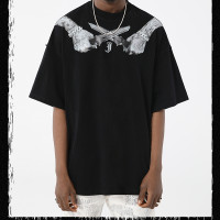 Custom Acid Wash T shirts Men | Streetwear Cotton T Shirts | Sword Pattern Print Mens Oversized Dark T Shirt