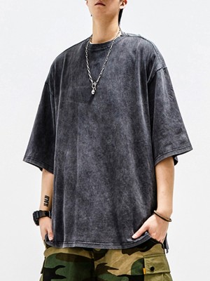 Custom Blank Acid Wash T Shirts | Black Short-sleeved Retro Oversized 100% Cotton T-shirt