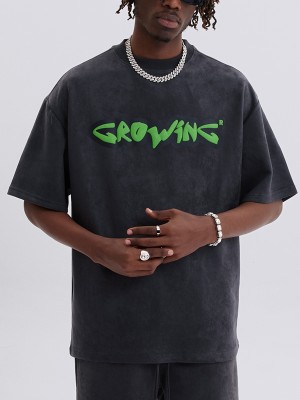 Customized Suede Fabric Short Sleeved T-shirts | High Street Oversize Blank Puff Print Streetwear