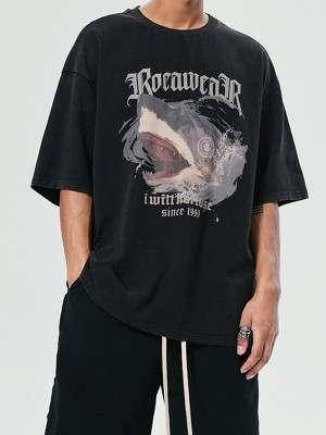 Customized Production Votton Hraphic TShirt, White Ink Direct Print Washed Streetwear T Shirts Men