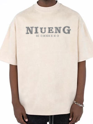 Production Customized 300GSM Heavyweight Suede Round Neck Short Sleeve Streetwear T Shirt Men