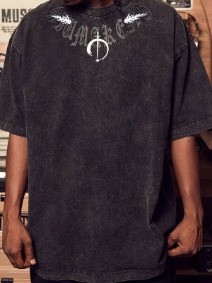 Customized Manufacturing Gothic Letters and Sword Pattern Printed Round Neck Streetwear T Shirt Men