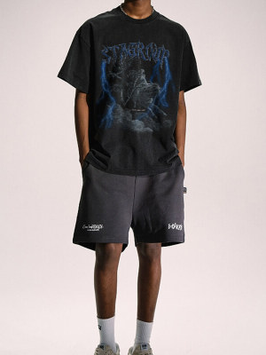 Manufacturing Customized Devil Printed Cotton T-Shirt, Vintage Washed Streetwear T Shirt Men
