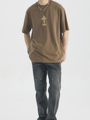 Manufacturing Customized Cross Theme Printed T-Shirt, Smoke Cross Printed Streetwear T Shirt Men