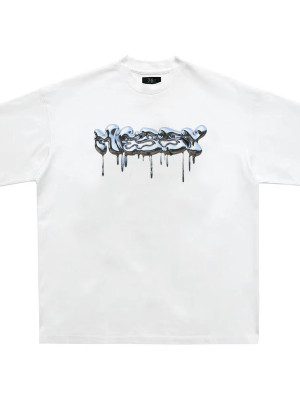 Custom Futuristic Cotton Streetwear, Liquid Letter Print Heavyweight Oversized Short Sleeve T Shirts