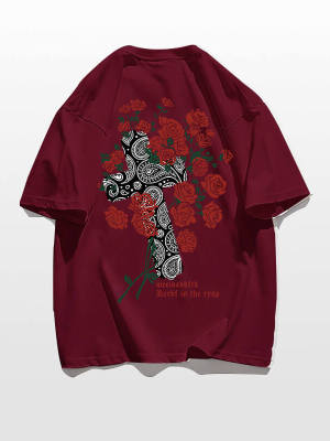 Vintage Floral Print Combed Cotton T Shirts, 230GSM, Combed Cotton Fabric, Heat Transfer Support ODM, OEM