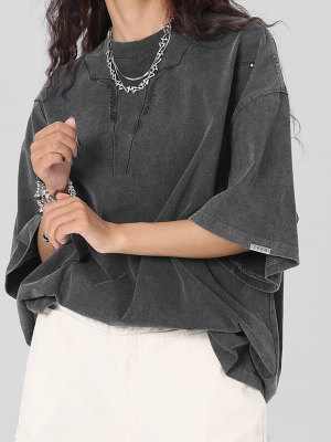 Customized Tech Oversized Streetwear - 260GSM Heavyweight Cotton Washed Rivet Short Sleeve T-Shirt