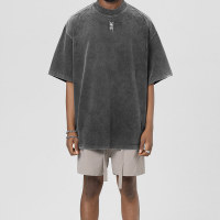 Customized Tech Washed Short Sleeve T-Shirt, 100% Cotton, 260GSM, Washed+Sandblasting/ Embroidery Support OEM, ODM