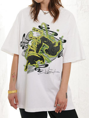 Custom Animal Print Oversized Streetwear - 190GSM Cotton White Ink Direct Print Short Sleeve T-Shirt