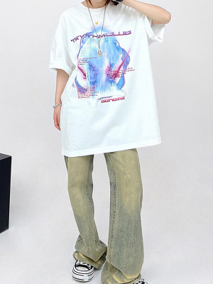 Vintage Washed Short Sleeve T-Shirt, 190GSM, Polyester 90% Other 10%, White Ink Jet Print, Oversized Fit Support OEM, ODM