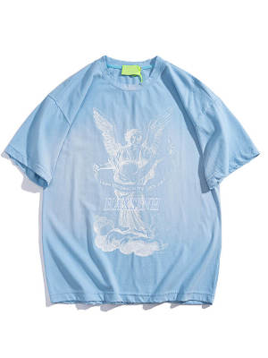 Customizable Angel Print Oversized Streetwear - 190GSM White Ink Direct Print Short Sleeve T-Shirt