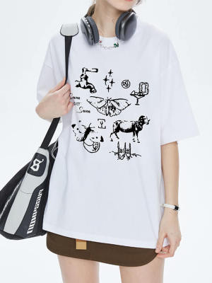 Oversized Short Sleeve T-Shirt Women, 190GSM, 100% Cotton, White Ink Jet Print, Oversized Fit Support OEM, ODM
