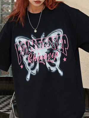 Design Butterfly Theme Printed Oversized Streetwear - 190GSM Cotton Short Sleeve T-Shirt Women