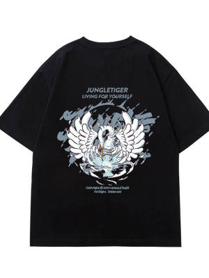 Crane Printed Cotton Oversized Short Sleeve T-Shirt, 190GSM, 100% Cotton, Heat Transfer, Oversized Fit Support OEM, ODM
