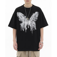Customized Butterfly Print Short Sleeve T-Shirt,100% Cotton, 260GSM, White Ink Jet Print, Oversized Fit Support OEM, ODM