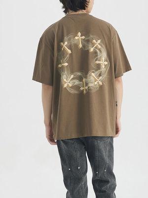 Cotton Smoke Cross Oversized Short Sleeve T-Shirt, 100% Cotton, 230GSM, White Ink Jet Print Support OEM, ODM