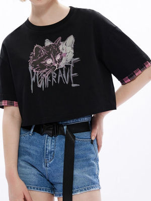 Customized Women's Punk Style Streetwear - 190GSM Cat Printed Slim Fit Short Sleeve T-Shirt Women
