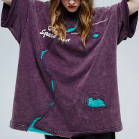 Custom Color Pattern T-shirts, 100% Cotton, 230GSM, Snow Washed, Patchwork, Oversized Fit Support OEM, ODM