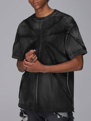Customized Personalized Streetwear - 260GSM Dirty Wash Split Patchwork Box Fit Vintage Embroidered T-Shirt