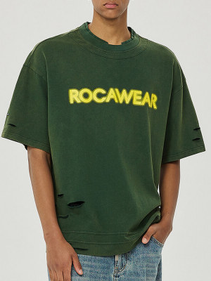 Customized Personalized Streetwear - 230GSM Washed Hole Torn Box Fit Vintage Puff Print T-Shirt