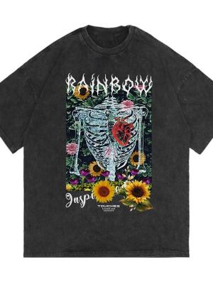 Custom skeleton element T-shirt with Snow wash and white inkjet print process, 230G cotton fabric, stylish and comfortable