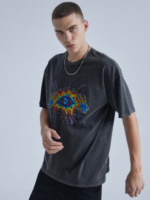 Custom Mystery Symbols T-shirt with Snow wash and pyrography process, 230G cotton fabric, stylish and comfortable