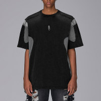 This vintage wash t-shirt features a patchwork color-blocking design with an embroidered print for street lovers.