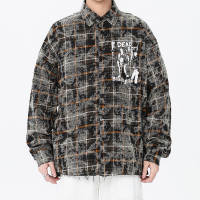Customized Street Style Plaid Long Sleeve Shirt | 300GSM, 100% Cotton, Oversized Fit Dark Style Shirt