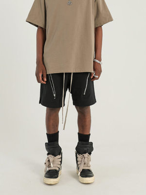 Custom High Street Style Zip-up Shorts | 100% Cotton, Loose Fit Solid Color Sport Straight Shorts