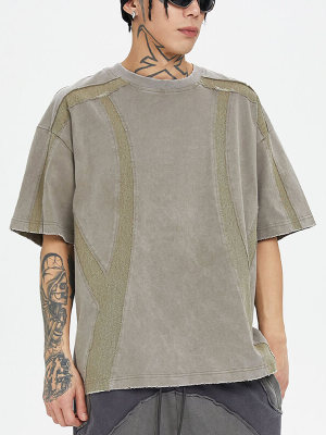 Custom Vintage Washed Splicing Streetwear T-Shirt | 300GSM, 100% Cotton, Oversized Fit | High Street Style T-shirt