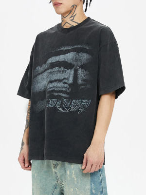 Custom Heavyweight Vintage Washed Print T-shirt | 300GSM, 100% Cotton, Boxy Fit | Dark Street Style T-Shirt
