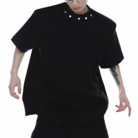 This custom punk street style t-shirt features buttons at the neckline. Customizable labels and logos.