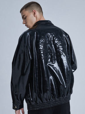 Custom Artificial Leather Lapel Long Sleeve Jacket | Street Style | Touches Dark Original Design Jacket