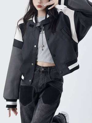 Custom Vintage PU Patchwork Short Baseball Jacket | Dark Vintage Style Jacket | Custom Variety Jacket Manufacturer | OEM & ODM