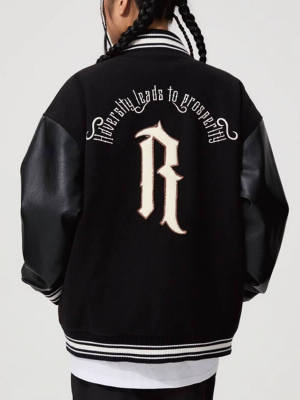 Featuring a classic baseball jacket design with added layered stitching for fall and winter travel.