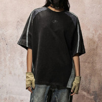 OEM Streetwear Custom Washed Patchwork Moto Style T-Shirt | 270GSM, Cotton Fabric | Vintage Street Style | Dark Style Streetwear T-Shirts