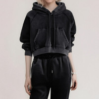 Cropped hoodie design with snow wash process made from fleece fabric. Support OEM & ODM.