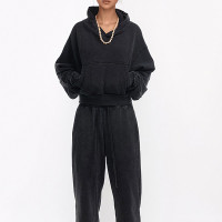 Vintage short hoodie, drop shoulder short version design, wear loose show petite, show figure proportion.