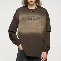 CUS2412063263W24 Puff Printed Washed Double Layer Long Sleeve T-Shirt | Dark Street Style | Streetwear T-shirts Manufacturer
