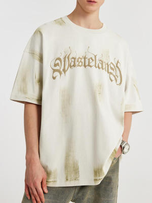 CUS24123031S24 Wasteland Style Brush Printed Oversized T-shirt | Vintage Street Style | China T-Shirts Manufacturer | Support OEM/ODM | 50 pcs MOQ