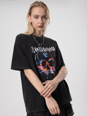 Skull Print Dark Street Style Shorts Sleeve T-Shirts | Dark Street Style | Streetwear T-Shirts Manufacturer | 50 PCS MOQ