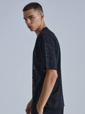 Washed Black Graphic T-shirt | Custom Skull T-shirts | Snow Washed, DTG, 100% Cotton | 50 PCS MOQ