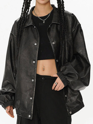 Vintage Washed and Polished PU Leather Coach Jacket | Vintage Street Styles | PU Leather | Oversized Fit | 50 PCS MOQ